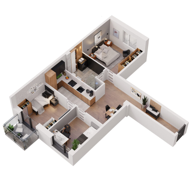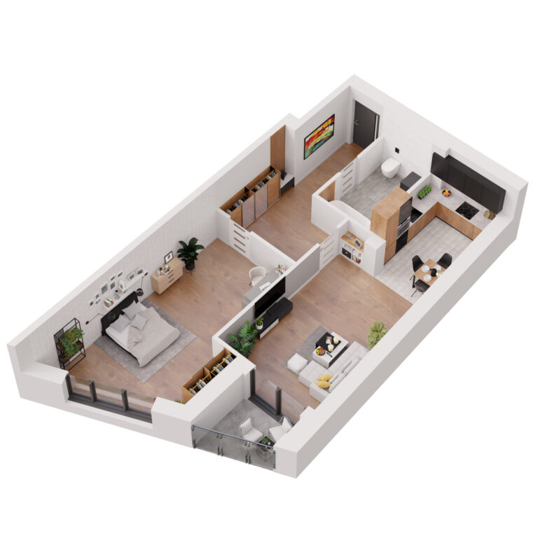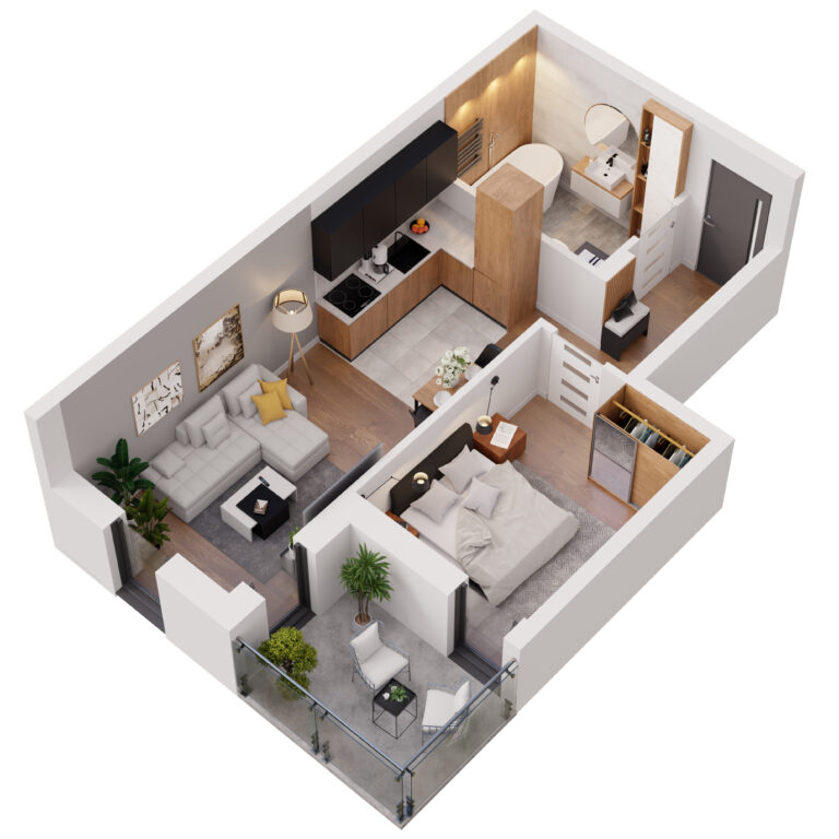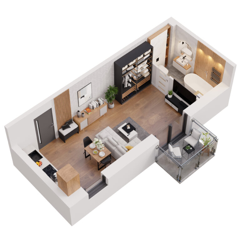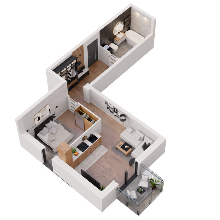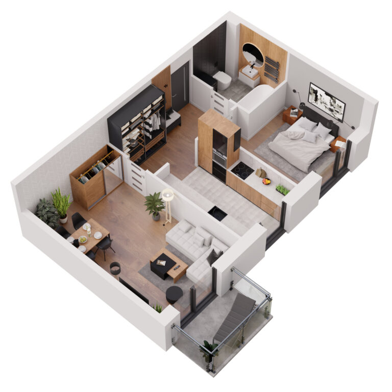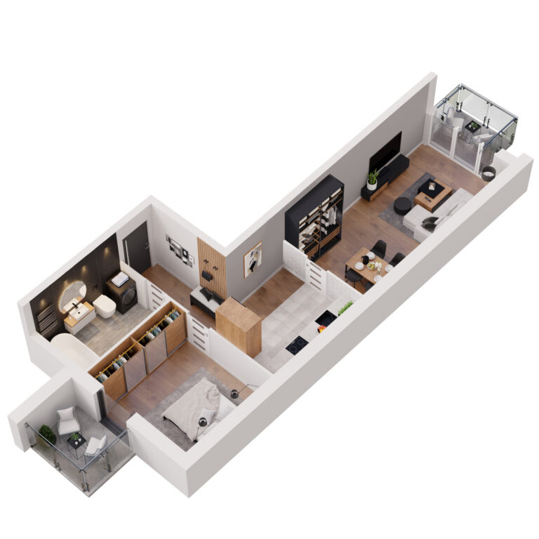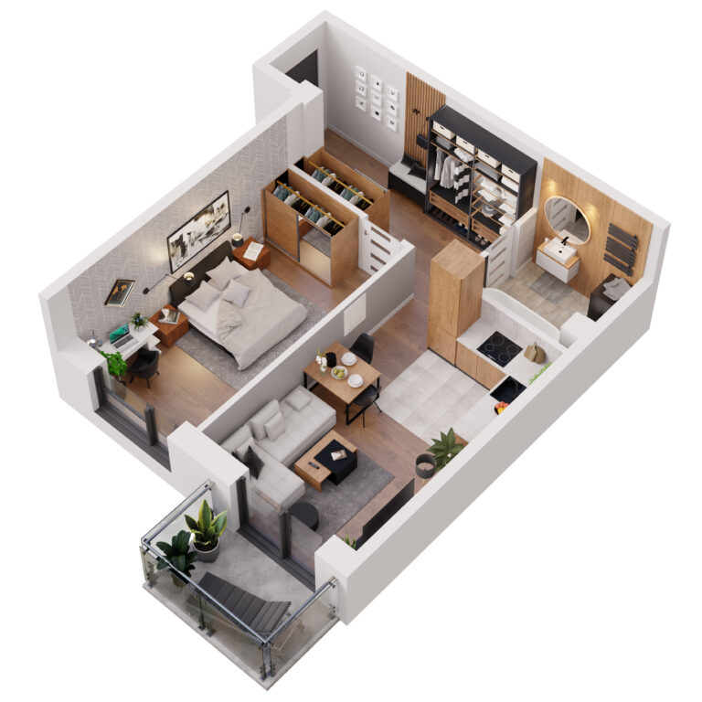 Do każdego mieszkania w Apartamentach Dubois przynależy balkon – praktyczna przestrzeń, umożliwiająca komfortowy wypoczynek na świeżym powietrzu bez wychodzenia z domu. Stanowi on idealne miejsce do relaksu, spożywania posiłków czy tworzenia swojego prywatnego zakątka z ulubionymi roślinami i kwiatami. Balkony mają przeszklone balustrady, dzięki czemu pokoje dzienne są jeszcze lepiej doświetlone.