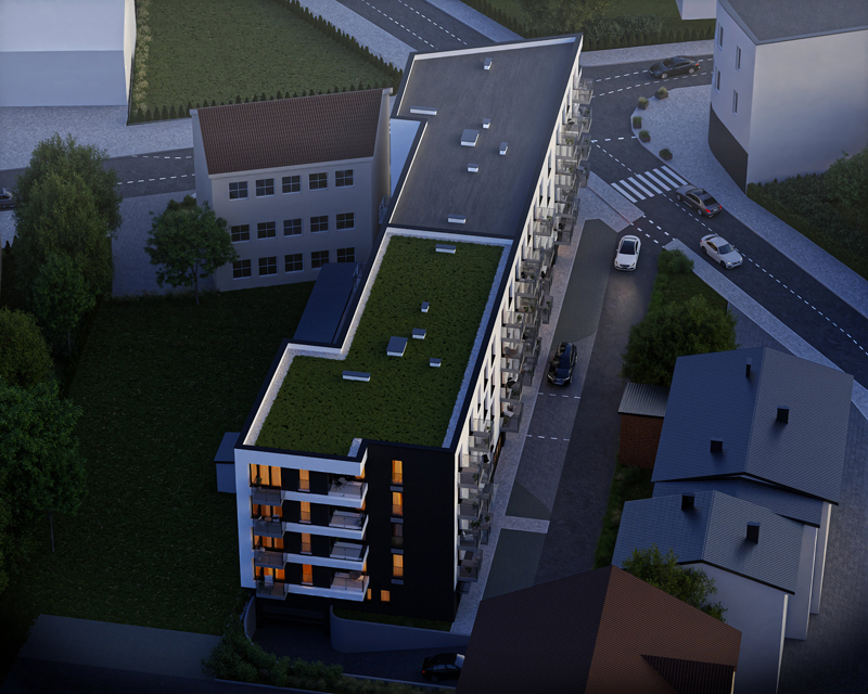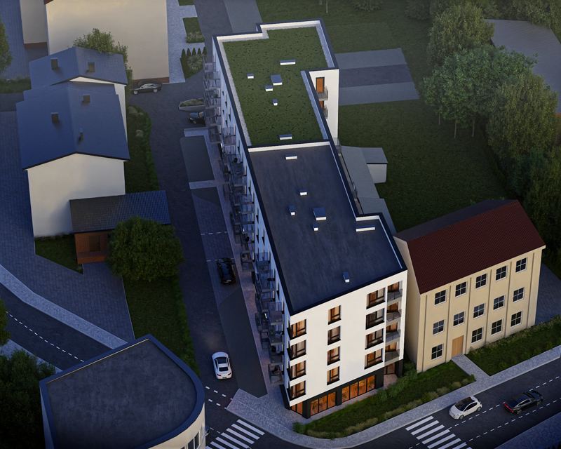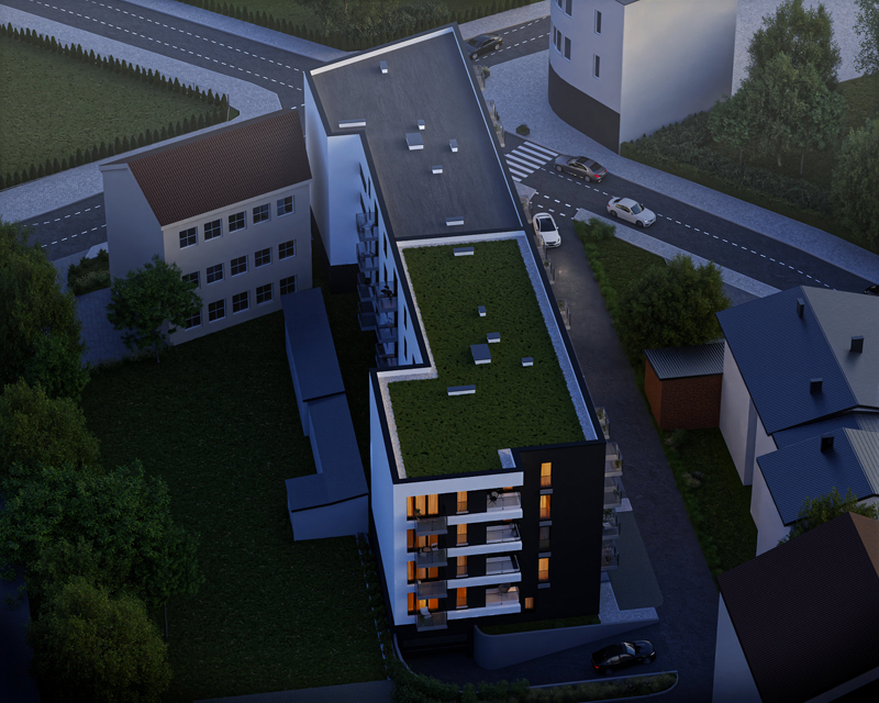 Apartamenty Duboisto nowoczesny apartamentowiec w centrum miasta. Obejmuje łącznie 56 mieszkań, lokale usługowe w parterze, komórki lokatorskie oraz parking podziemny, dzięki któremu nie będziesz mieć problemów z zaparkowaniem samochodu blisko mieszkania.
