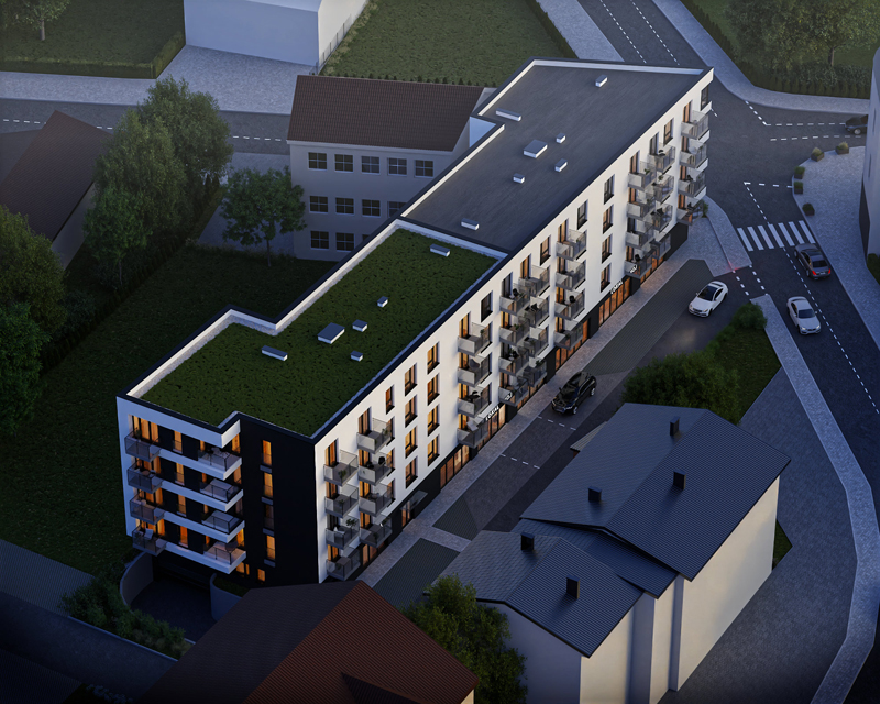 Inwestycja wyróżnia się nowoczesną architekturą, spełniającą najwyższe standardy funkcjonalności. Budynek zachwyca minimalistycznym designem, zastosowaniem nowatorskich rozwiązań konstrukcyjnych oraz wykorzystaniem energooszczędnych technologii. Jednym z charakterystycznych elementów projektu jest zielony dach, który nie tylko stanowi estetyczny akcent, ale również absorbuje dwutlenek węgla, przyczyniając się do poprawy mikroklimatu.