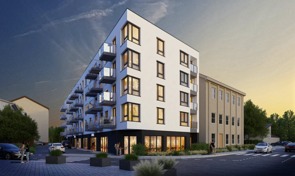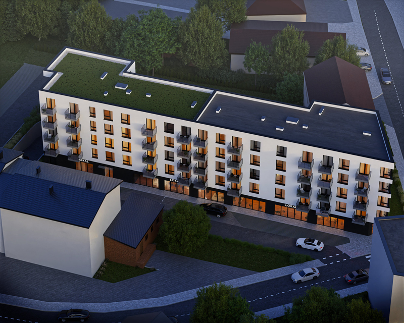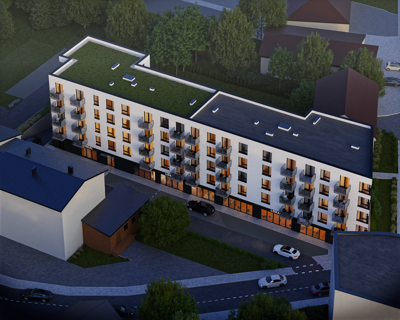Budynek mieszkalny wielorodzinny wraz z garażami podziemnymi i usługami w parterzeOstrołęka